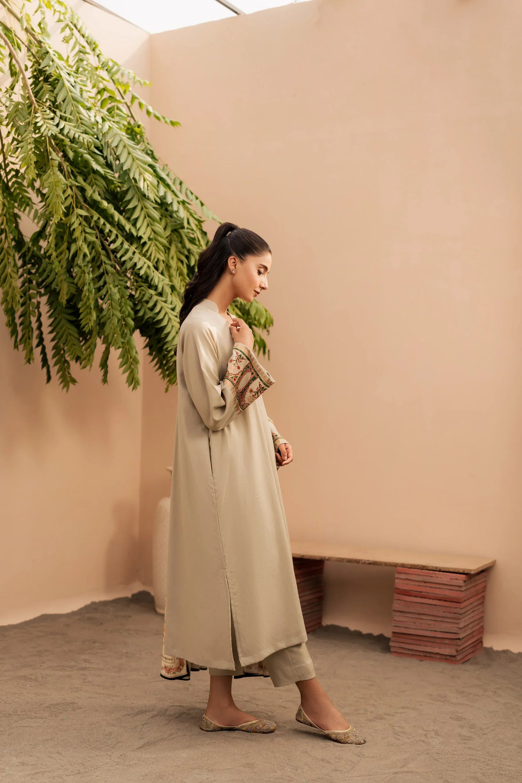 🤍 Soft ivory hue with elegant embroidery on sleeves