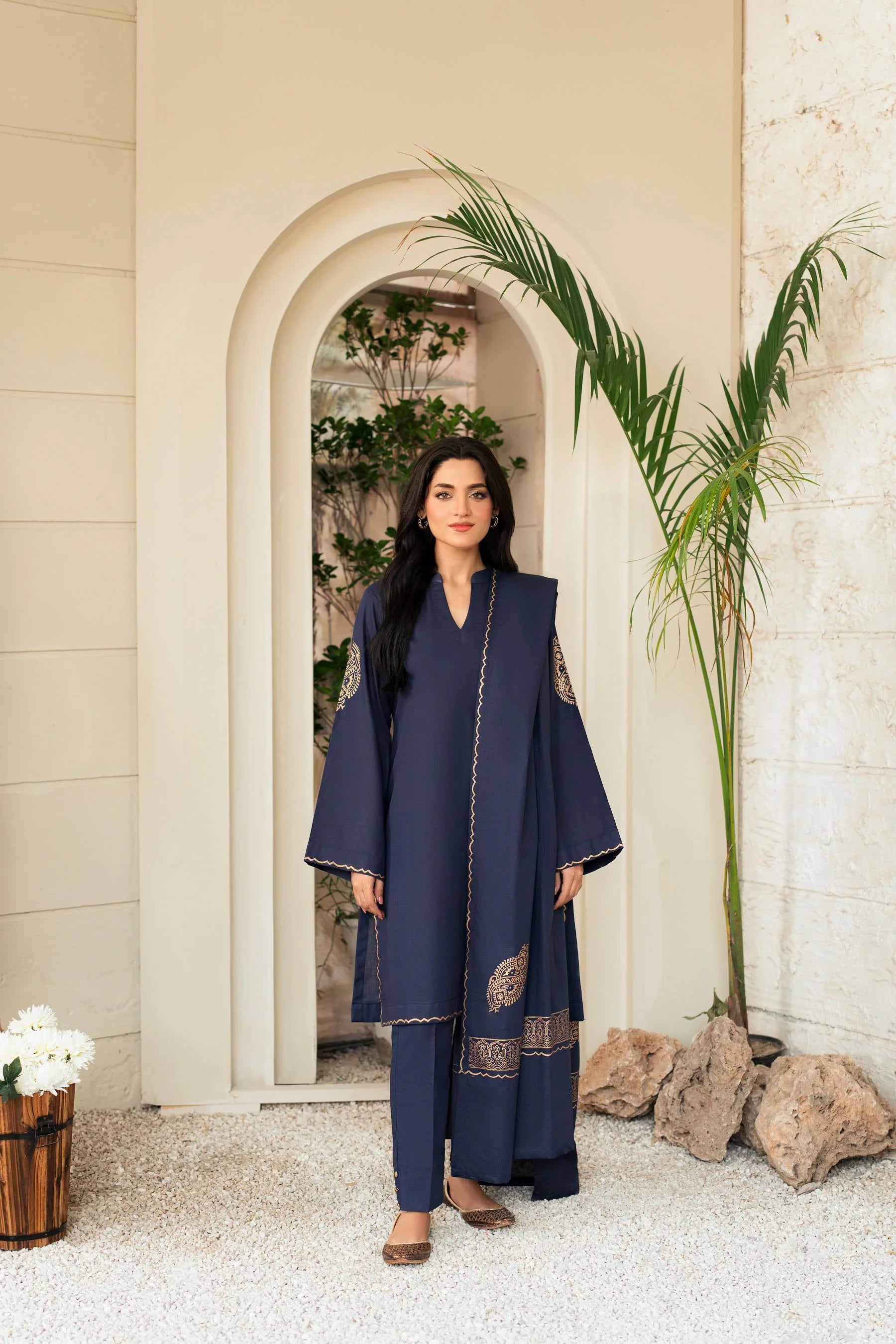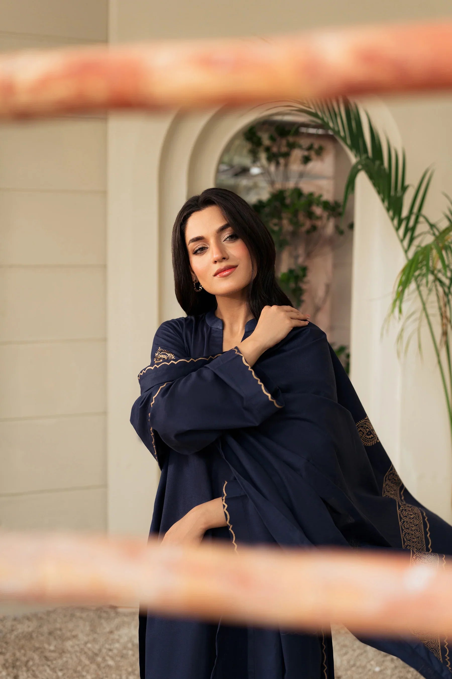 Sophisticated, graceful, and timeless — our Midnight Charm Kurta Set is designed for the modern woman who values classic elegance. Crafted in a rich navy tone, this ensemble features golden thread embroidery on the sleeves, Shawl, and hemline, blending traditional craftsmanship with contemporary tailoring. The straight-cut silhouette ensures comfort and confidence, making it perfect for festive gatherings, formal dinners, or refined daytime occasions.
