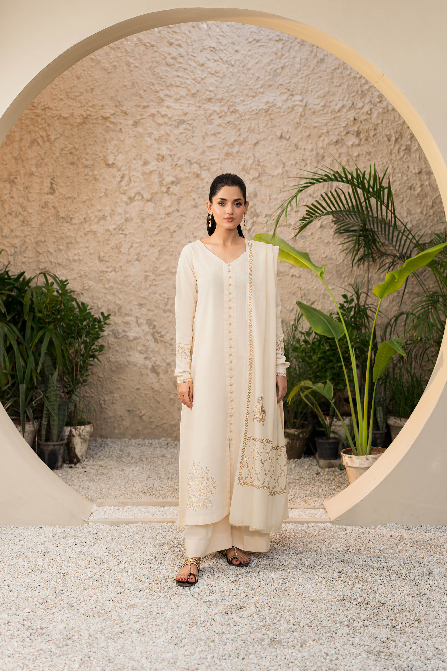 Ivory Muse Hand-Embroidered Kurta Set with Shawl