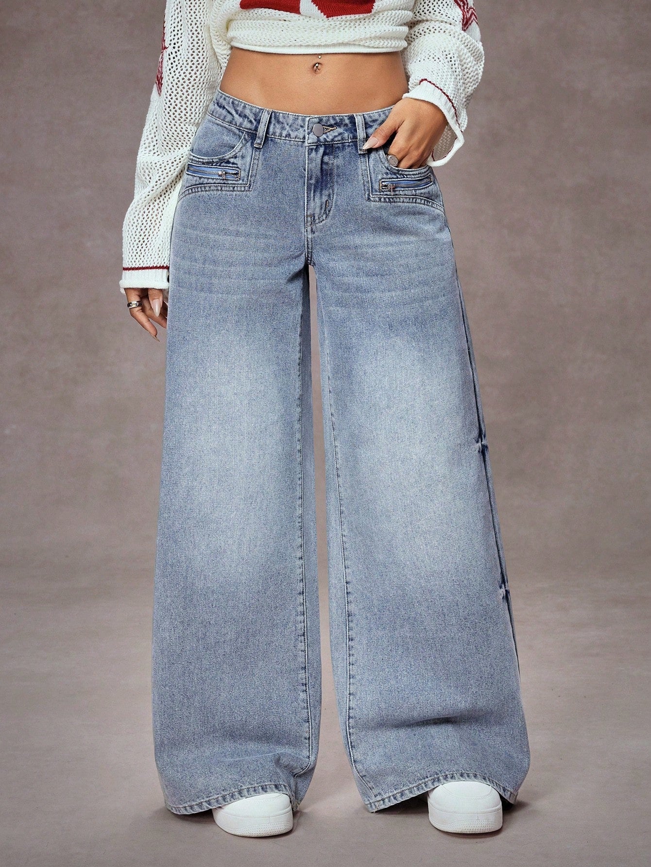 Make a powerful style statement with these Retro Zip Detail Extra Wide-Leg Jeans, crafted for women who love vintage Y2K aesthetics with a modern twist. Featuring a high-rise fit that flatters your waist and ultra-wide legs that create dramatic flow and volume, these jeans are a true standout piece.